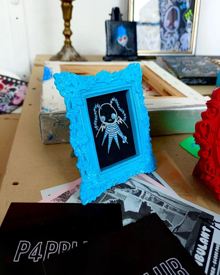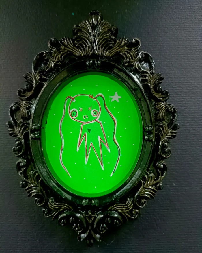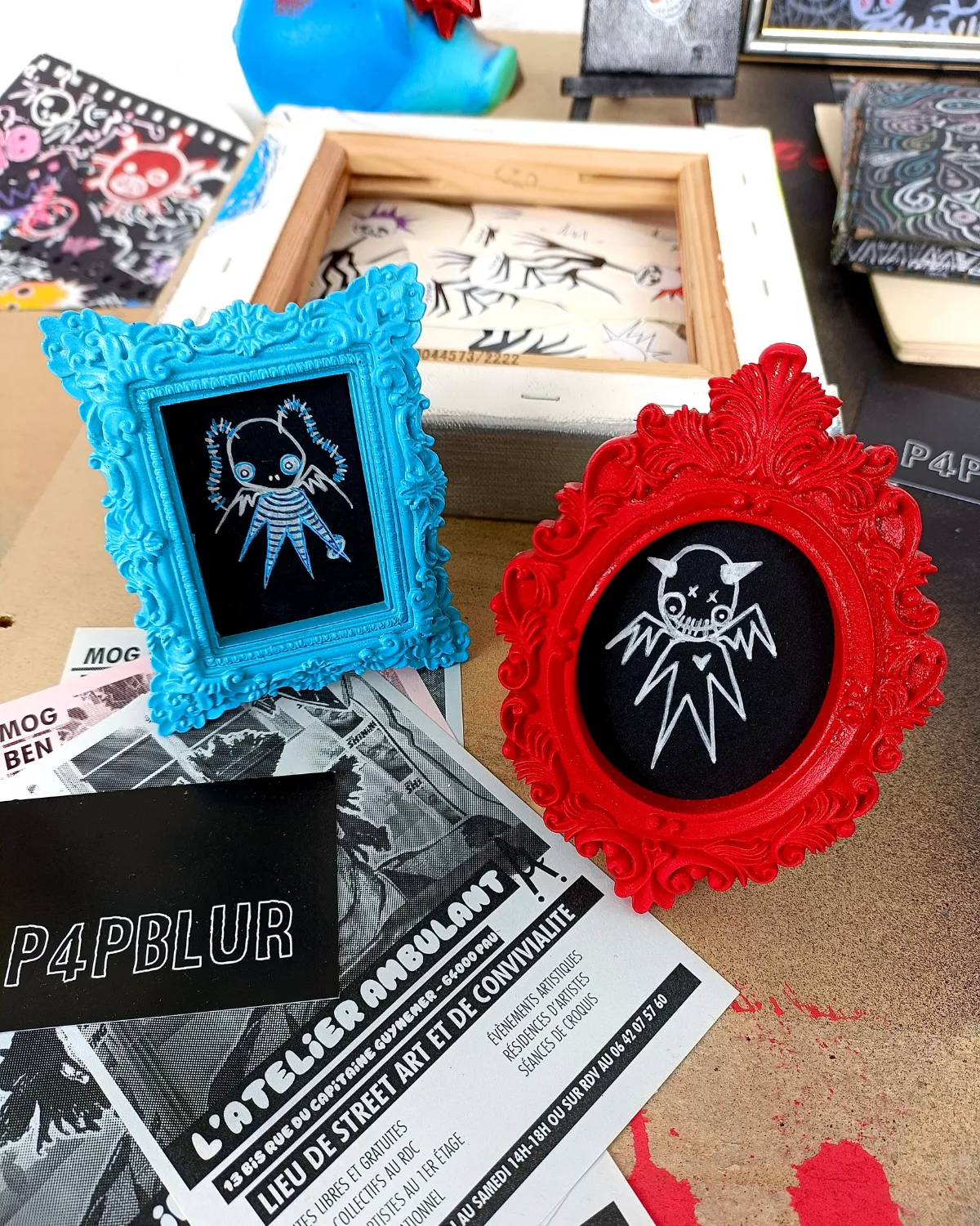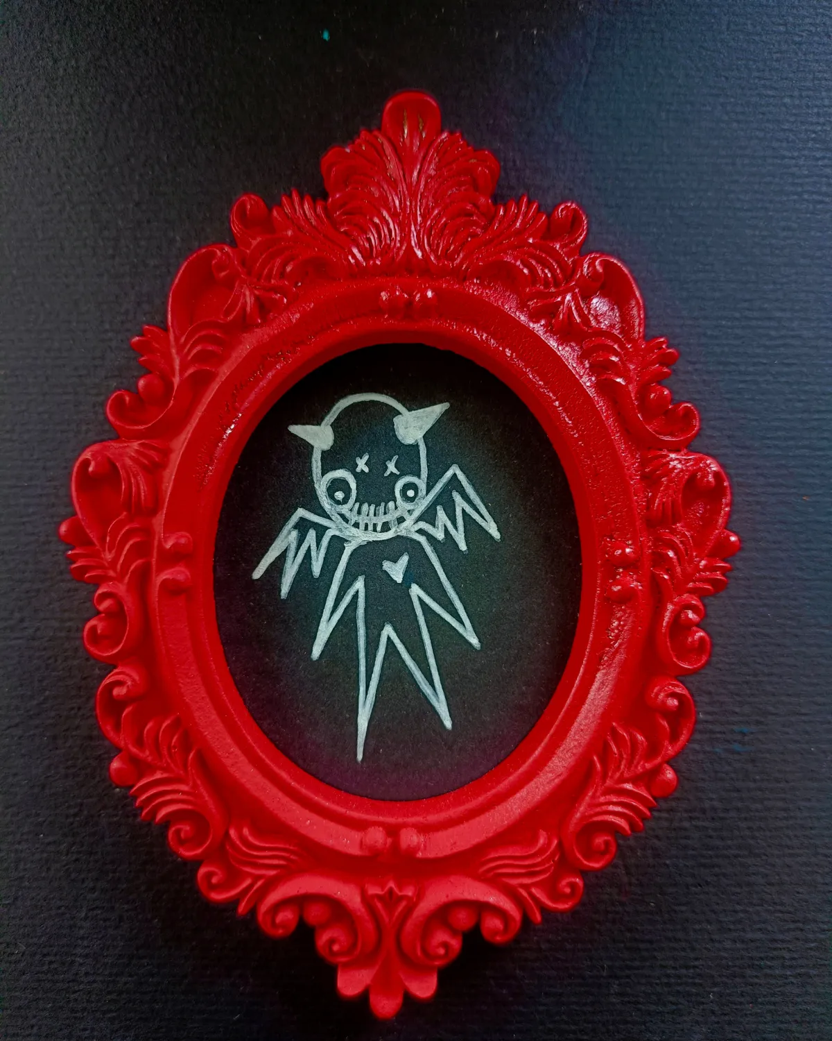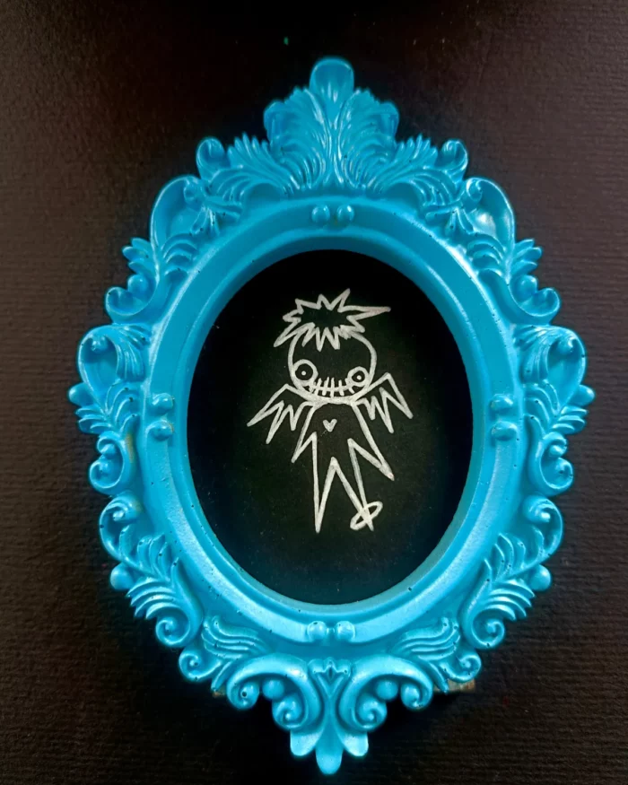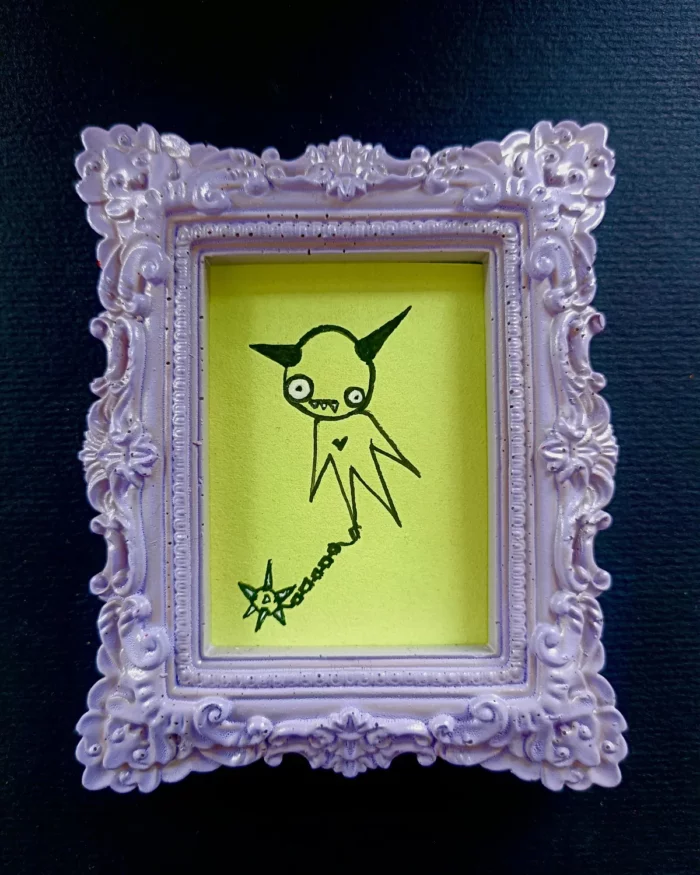 Cadre peint à la bombe, et dessin au posca (feutre acrylique).